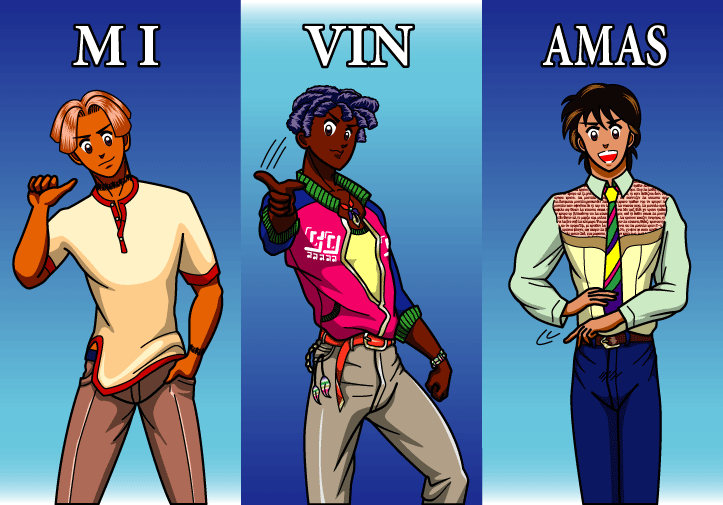 前々回のイラスト『ダンス・ダンス・ダンス』の三人組です。 今回が初めてのカラー化です。 白黒とはちょっと雰囲気が違うでしょ。