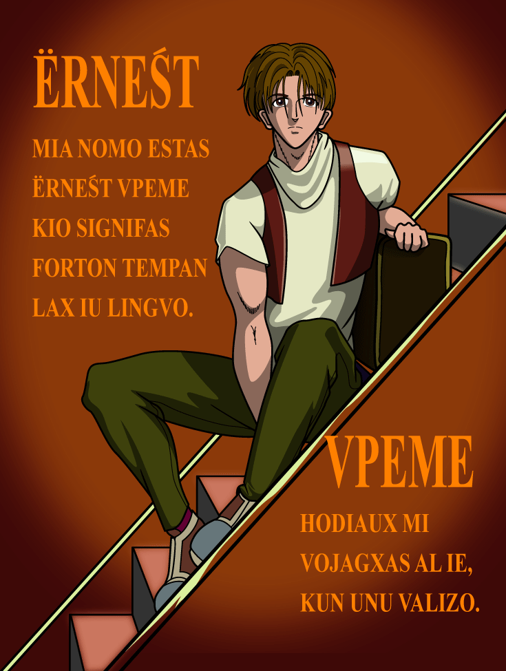 「9月はさよならの季節」って詩がありましたよね。 今回はちょっとものうげな旅行者のイラストです。 ちなみにエルネスト・ヴレーメってこの青年の名前ね。