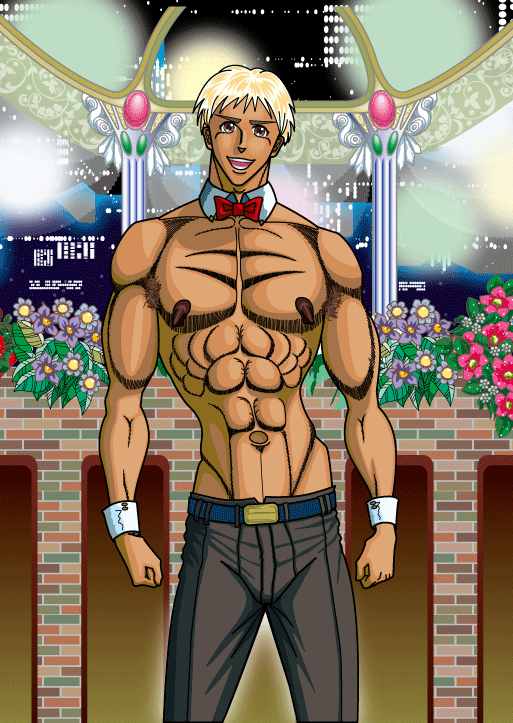 笑顔で迎えてくれるマッチョなウエイター。 画像クリックでビールを持った差益分あり。