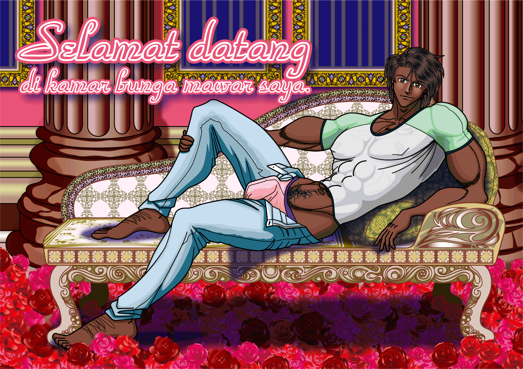 薔薇いっぱいの部屋。香りでめまいがしそう。 画像クリックでシャツを脱ぎます。